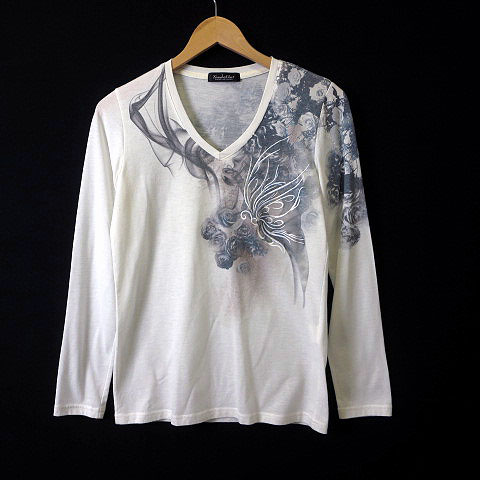 トルネードマート Tornado Mart Tシャツ ロンt 花柄 プリント Vネック 長袖 M オフ白 ホワイト メンズ 068 ベクトルパーク